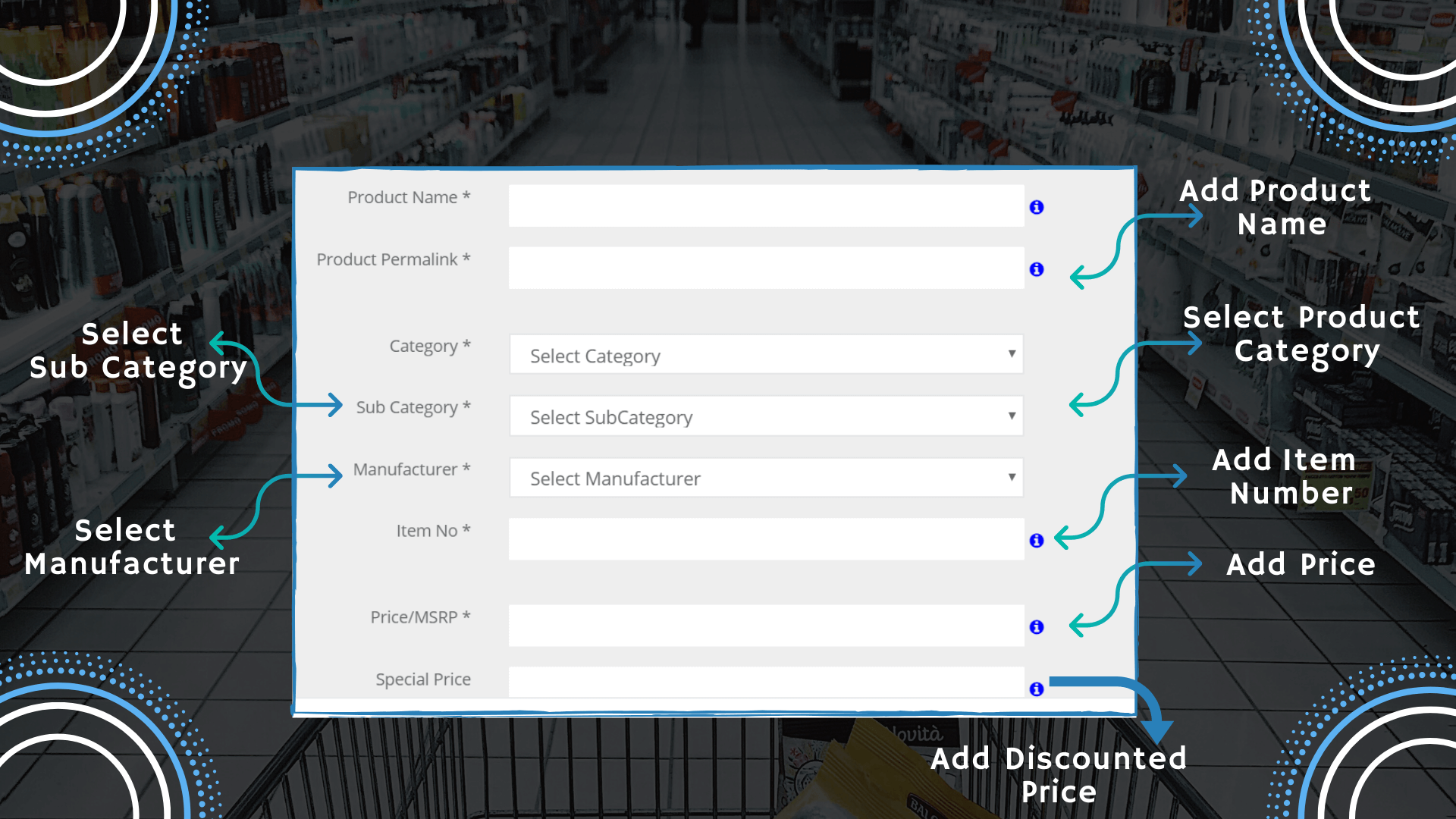 Adding Products - This tab contains all the product’s basic information such as the name of the product, its image, category, subcategory, price, gallery etc.